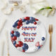 Celebrate Independence Day with this festive paper plate featuring balloon wreath in red, white, and blue. Text "Happy 4th of July" in foil balloon letters.
