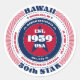 This sticker makes a wonderful souvenir or gift with this state-themed design. The bold, patriotic colour scheme and prominent display of the state name, "Hawaii," evoke feelings of freedom, loyalty, and unity. Great for celebrations, national holidays, and patriotic-themed parties.