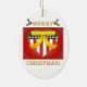 A beautiful double sided, U.S. patriotic heart, with yellow ribbon oval ceramic ornament. This ornament features a patriotic heart, it's coloured in red white and blue, and has a stars and stripes design to reference the American Flag. The heart also has a golden trim, and a big yellow support the troops ribbon on top. The heart is on a glowing look red background. The ornament reads Merry Christmas in a beautiful golden lettering with holly and berries on top! This unique digital artwork is displayed on both the front and back of the ornament. A beautiful ornament to support the troops, for friends and family, a great addition to any ornament collection, a great gift for a veteran or someone currently serving in the U.S. military, or a patriotic collector. This design is available on different shapes and styles of ornaments and other wonderful gift items too. For more military Christmas holiday themed styles of ornaments, gifts, stickers, tags, cards, stamps and much more please visit our store!