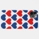 Show your patriotism with this gorgeous phone case decorated with red and blue hearts, on a white background.