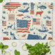 A bold and dynamic pattern showcasing the essence of American pride. Featuring the Statue of Liberty, the USA map, the American flag, and other USA landmarks and symbols, this kitchen towel captures iconic U.S. symbols in a cohesive and patriotic layout. Perfect for celebrating national holidays or expressing national spirit with a classic Americana touch.