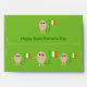 This envelope features a funny cartoon of an egg with arms and legs. The egg has arms and legs and a small crack in its head exposing the white inside. It has blue eyes with a black pupil and a big smile where the yolk of the egg can be seen. The eggshell looks rough. This patriotic Irish egg proudly holds its flag and there is green text below the flag that reads "it's all about the craic". This fun design is great for Saint Patricks Day or for proud Irish men and women. There is customisable text on the back so you can personalise it. There is room on the front to affix postage. This envelope will hold any A7 sized greeting card. .