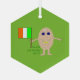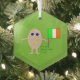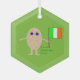 This ornament features a funny cartoon of an egg with arms and legs. The egg has arms and legs and a small crack in its head exposing the white inside. It has blue eyes with a black pupil and a big smile where the yolk of the egg can be seen. The eggshell looks rough. This patriotic Irish egg proudly holds its flag and there is green text below the flag that reads "it's all about the craic". This fun design is great for Saint Patricks Day or for proud Irish men and women.