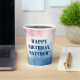 Throw an awesome 4th of July party or a patriotic birthday celebration with these personalised cups. These paper plates feature a tie dye style background in red, white and blue with your custom message in navy blue stencil style lettering. They're perfect for parties to honour veterans, returning soldiers and active duty military personnel.
