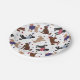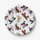 Patriotic labradoodles dressed in red white and blue with stars, stripes and dog bones on a white background.
