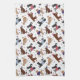 Patriotic labradoodles dressed in red white and blue with stars, stripes and dog bones on a white background.