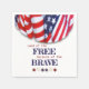 This design features red, white, and blue bunting across the top and stars along the bottom with "Land of the FREE because of the BRAVE" message. Great for patriotic holidays or all summer.