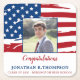 Patriotic American Flag Military Graduation Party Coasters. Host your patriotic graduation party with this USA flag patriotic graduation party coasters. USA American flag modern red white and blue design with graduate photo.. This military graduation coasters are also perfect for military retirement parties. See our collection for matching military graduation invitations, gifts, party favours, and supplies. COPYRIGHT © 2021 Judy Burrows, Black Dog Art - All Rights Reserved. Patriotic Military American Flag Graduation Square Paper Coaster