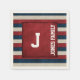Red, White, and Blue patriotic striped paper napkins with personalisation of Monogram and Last name or wording of choice. Nice for everyday use, patriotic holidays, events, housewarmings, parties, by the pool, and many more uses.