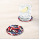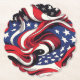 These paper coasters are shown in a patriotic July 4th stars and stripes flag print design.
