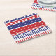 This paper drink coaster is shown in a patriotic stars and stripes print, perfect for your July 4th home décor.