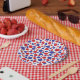 Red and blue polka dots with a white background give this a patriotic feeling.