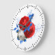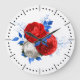 This wall clock features a beautiful floral arrangement in red, white and blue. It's available in 2 sizes in round and square