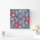 Patriotic Red and Blue Stars - Blue Barnboard Square Wall Clock