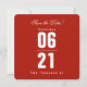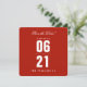 Save the Date card for the Patriotic Red & Blue wedding suite. Fill in the day of the week, the month and day in two digit numbers, and the year spelled out on the front.