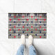 Patriotic red and navy blue stars pattern rustic shingles wood boards background, American holiday doormat.