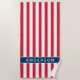 Patriotic Red White and Blue Stripes Custom Name Beach Towel