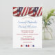 This patriotic red, white, and blue bunting along the top and matching starts along the bottom set the front design of this wedding invitation. The invitation back matches the front design. Personalise the design with your wedding details in the template fields.