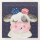 PATRIOTIC RED WHITE BLUE COW GLASS COASTER