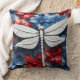 PATRIOTIC RED WHITE BLUE DRAGONFLIES & FLOWERS CUSHION