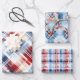 Patriotic Red White Blue Plaid Complementary Set Wrapping Paper Sheet