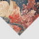 This tissue paper sheet features a red, white, blue and gold rooster against beautiful, stylized flowers, leaves, and botanical elements. Watercolor paint strokes and gold dots add color and interest.