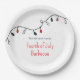 Patriotic 4th of July paper plates, with a red white and blue string lights design. With red and blue customisable typography lettering, you add your own information. A festive addition to your summer barbecue party supplies.