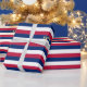 Patriotic, stylish, trendy, custom, personalised, red blue and white colour stripes, modern pattern, elegant faux gold script, premium quality, gift wrap wrapping paper. Simply type in your greetings / wishes / note / name / couple's names / family name / company name / recipient's name, to make this wrapping paper one-of-a-kind, and your gifting truly special. Perfect for both, home and business, adults and kids. Great wrapping paper for wrapping gifts for birthday, fathers day, mothers day, graduation, christmas, holiday, new years, wedding, marriage anniversary, 4th of July independence day, memorial day, and more, for your loved ones, mum, dad, husband, wife, bride, groom, son, daughter, brother, sister, grandpa, grandma, armed forces personnel, military, family and friends.