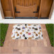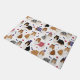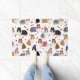 Patriotic rough collies dressed in red, white and blue with stars and stripes with dog bone and star background.