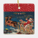 Christmas tree ornament with Patriotic Santa Claus flying through the night sky on his sleigh with American Flags waving - from a WWII design.