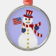 Patriotic Snowman Round Silver Christmas Ornament