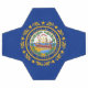 Crafted to celebrate the Granite State's heritage, this soccer ball prominently displays the state flag of New Hampshire. The flag features the state seal centred on a blue field. The seal depicts the frigate USS Raleigh sailing near a granite rock with the state motto "Live Free or Die" written above and laurel leaves below, representing peace and strength.