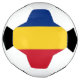 Crafted with meticulous attention to detail, this soccer ball proudly showcases the vibrant colours and symbolic elements of the Romanian flag. The design prominently displays vertical bands of blue, yellow, and red, symbolising Romania's rich history and cultural heritage.