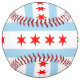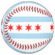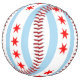 The flag of Chicago is prominently displayed on the softball, showcasing its distinctive design of light blue and white horizontal stripes with four red stars. Each star represents a significant event in Chicago's history: Fort Dearborn, the Great Chicago Fire, the World's Columbian Exposition, and the Century of Progress Exposition. This vibrant design symbolizes the rich heritage, resilience, and pride of the Windy City.