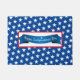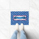 Plush doormat is shown in a patriotic blue and white stars print, perfect for July 4th décor.
