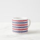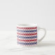 Ceramic espresso mug is shown with a festive July 4th patriotic stars and stripes print.