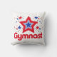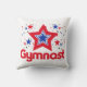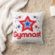 Patriotic throw pillow with the text, "GYMNAST" under a red, blue, (and a few black) stars graphic!