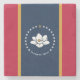 At the heart of the design is the modern flag of Mississippi, adopted in 2020, which proudly displays a central white magnolia blossom—symbol of hospitality and renewal—on a rich blue field. Framed by a circle of twenty white stars and a single gold star, the flag honours Mississippi's heritage as the 20th U.S. state and its Indigenous roots. Red and gold stripes on either side add a dignified and powerful presence to the overall layout. This patriotic coaster makes a perfect gift for state history enthusiasts, proud Mississippians, or anyone who appreciates distinctive flag designs.