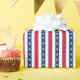Classic patriotic wrapping paper in a small-scale stars-and-stripes repeat. Perfect for birthdays, holiday gifts, party favours, and occasions that celebrate American pride.