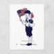 Vintage Americana 4th of July art with a patriotic boy holding red holiday fireworks and an old US flag.