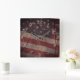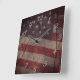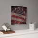 Patriotic US Flag Segment Over Rustic Cracked Wood Square Wall Clock