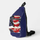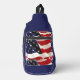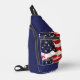 This cut and sew backpack sling bag is shown in a patriotic USA Flag print.