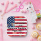 Vintage Patriotic USA Flag, red white and blue stars and stripes and colourful hearts, symbol for patriotic sentiments. The colours are vibrant and the colourful light hearts in the background are simulated. The calligraphic text is customisable.