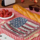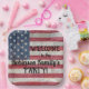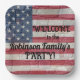 Patriotic USA Flag on Stone Wall Calligraphy Text Paper Plate