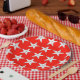 White stars on a field of Red ....! it's a great patriotic paper plate that's great for any table ... breakfast, lunch or dinner ... or a picnic.