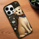 This whimsical and aesthetic design features an adorably cute yellow labrador retriever dog wearing blue and red bandanas decorated with stars, creating a fun and festive patriotic labrador theme. The yellow lab sits in front of a rustic wooden fence where colourful wildflowers grow, adding a soft, natural backdrop that enhances the charm and warmth of the scene. The gentle tones of the lab’s fur contrast beautifully with the bold red, white, and blue of the bandanas, drawing attention to the playful yet heartfelt design. This cute patriotic dog art is ideal for any dog fan, animal lover, or pet owner who enjoys celebrating their furry friend in style. The case also includes a customisable monogram template, making it a unique and personal gift option. Whether you're drawn to the aesthetic yellow lab dog design, love expressive pet design, or simply want to showcase your favourite breed with flair, this iPhone case offers the perfect blend of charm, personalisation, and Labrador love.