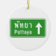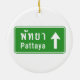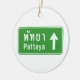 Pattaya Ahead ⚠ Thai Highway Traffic Sign ⚠ Ceramic Tree Decoration