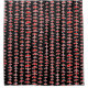 A shower curtain with an abstract pattern made up of slightly irregular vertical lines with semi-circular umbrella or dish like shapes in variated sizes and angles with a few flipped upward. This design uses a vector graphic so the pattern size can be increased or decreased. The background colour can also be customised.