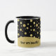 A chic mug for the fashion-conscious, this design features a gold polka dot pattern over a contrasting black background. Simply edit the sample text with your text or name on the other side.