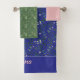 Pattern green leaf name blue pink bath towel